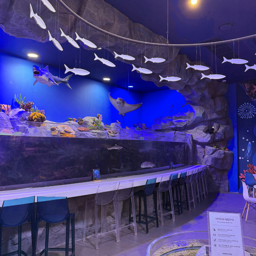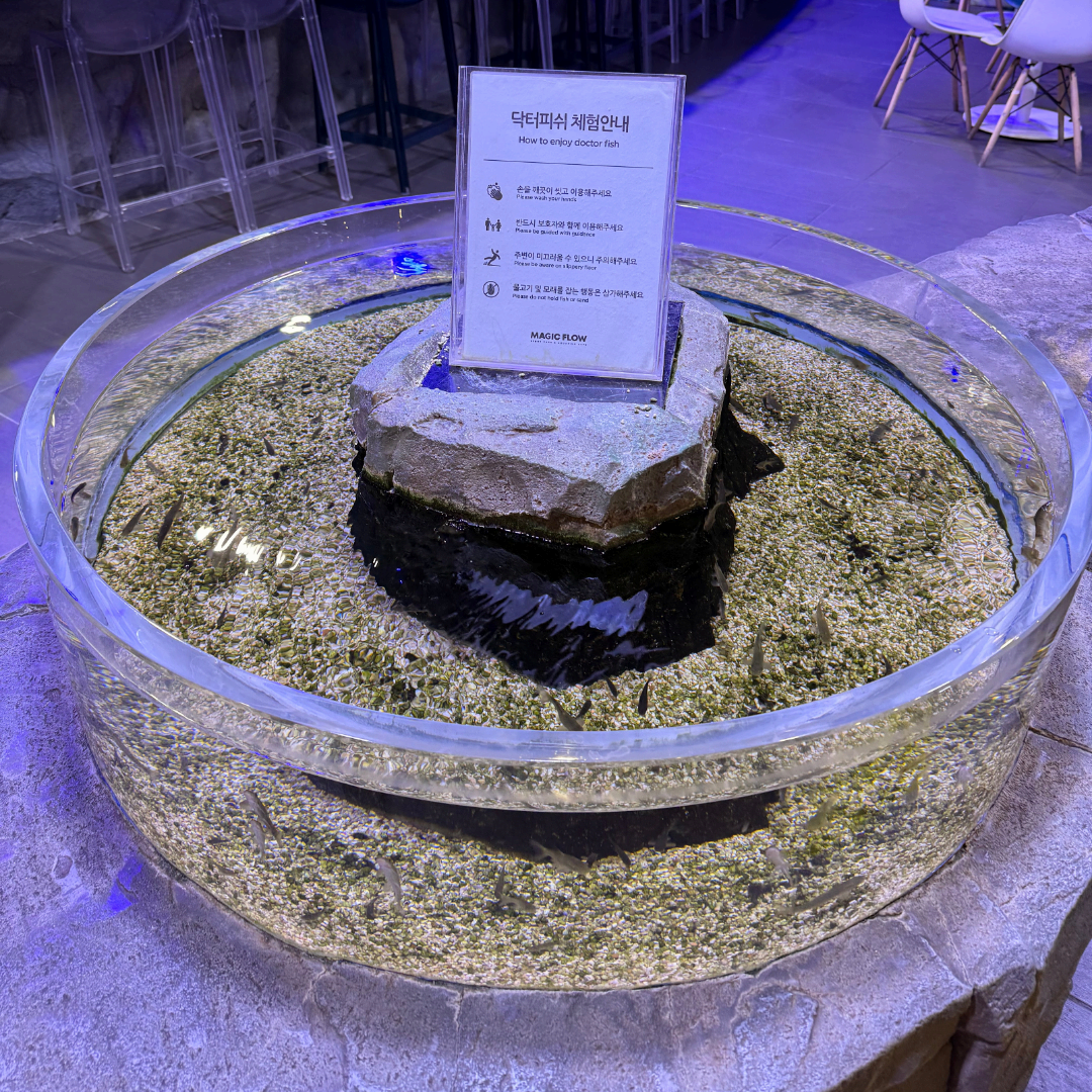 손을 살짝 담그면 작은 물고기들이 다가와 각질을 먹어주는 독특한 체험이 가능해요 🐟