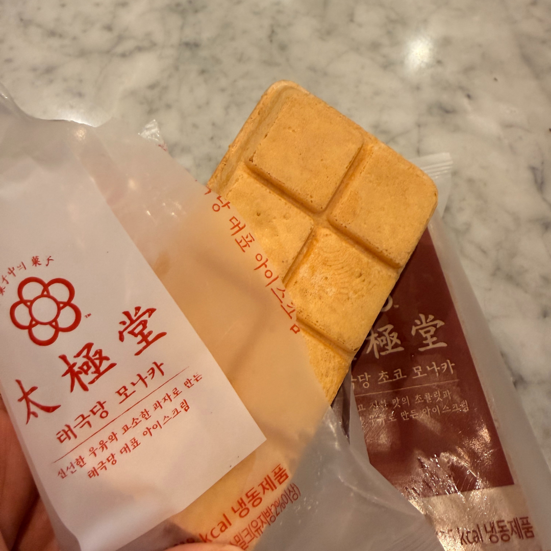 모나카는 바삭한 과자 속에 달콤한 아이스크림이 꽉 차 있어 은근 중독성 있다.