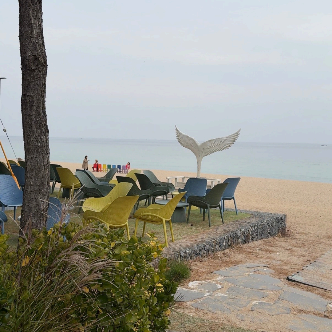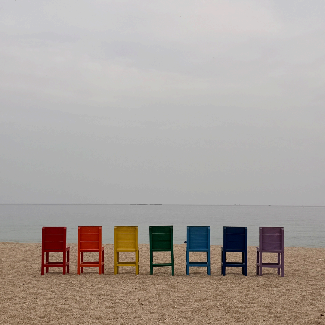 도착하자마자 눈에 들어오는 건 바다 앞에 놓인 무지갯빛 의자 7개.