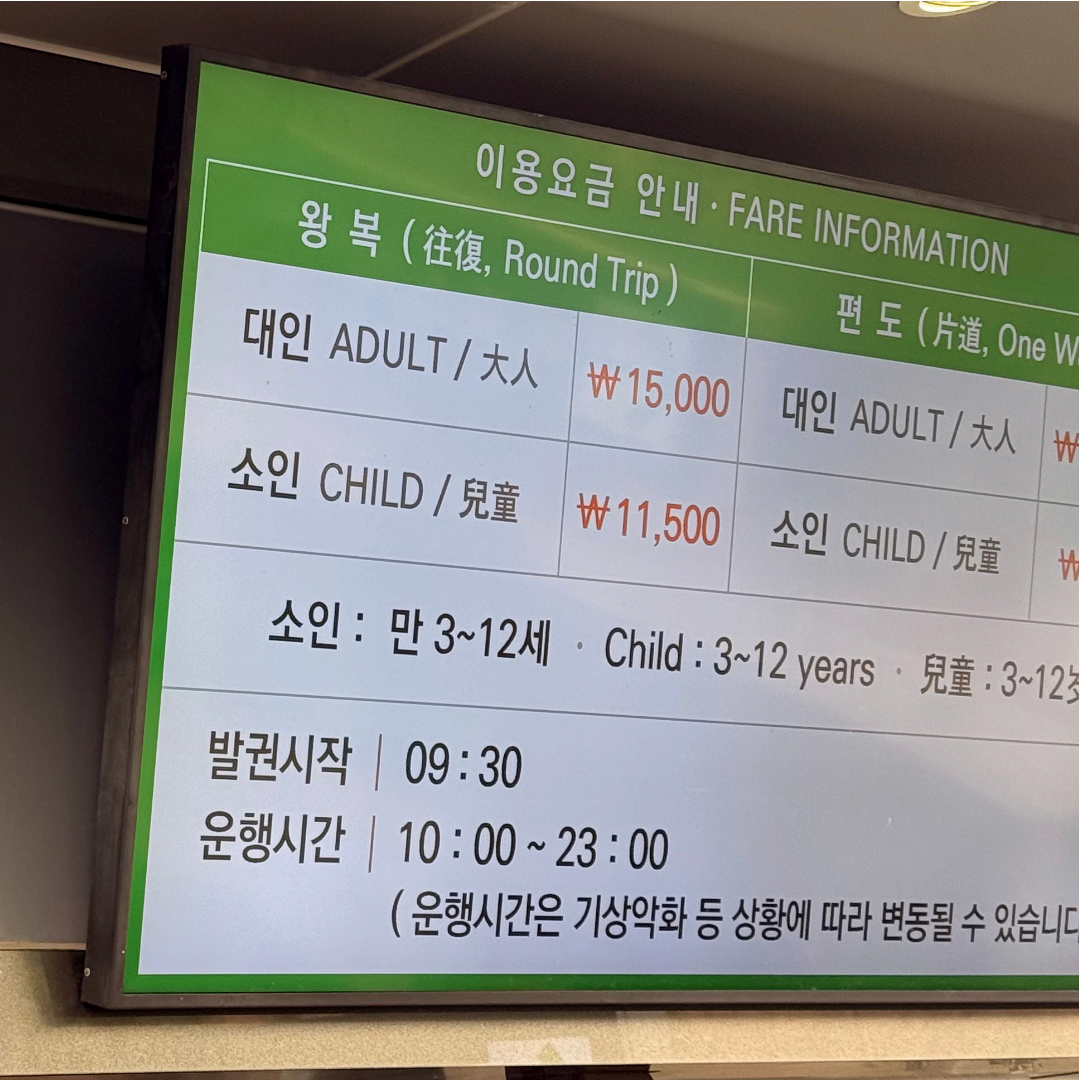 가격은 성인 기준 편도 11,000원, 왕복은 14,000원인데